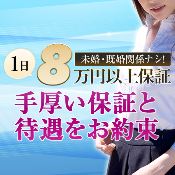 1日8万円以上保証!リニューアルにつき20・30・40代を募集中!未婚・既婚関係ナシ!未経験の方も経験者の方も稼げるようにスタッフ全員全力サポートします!