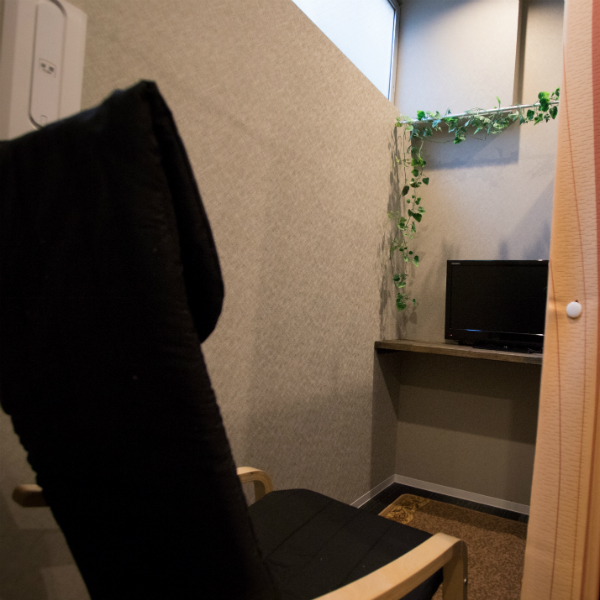 待機場所は個室の待機室です。PC・テレビ・小物類・Wi-Fi環境など充実しており、空気清浄機も設置した快適な空間になっています。