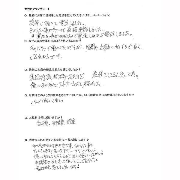お店のこと、仕事のこと、お客さんのこと、お金のことなど、入店前の気になることを先輩キャストに質問しました。