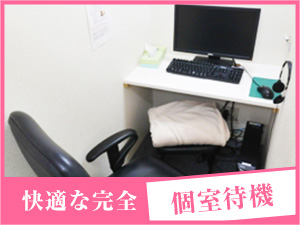 当店自慢の待機スペースは大部屋と個室の両方が備えられていること。個室にはパソコンが置かれていてネット使いたい放題です♪